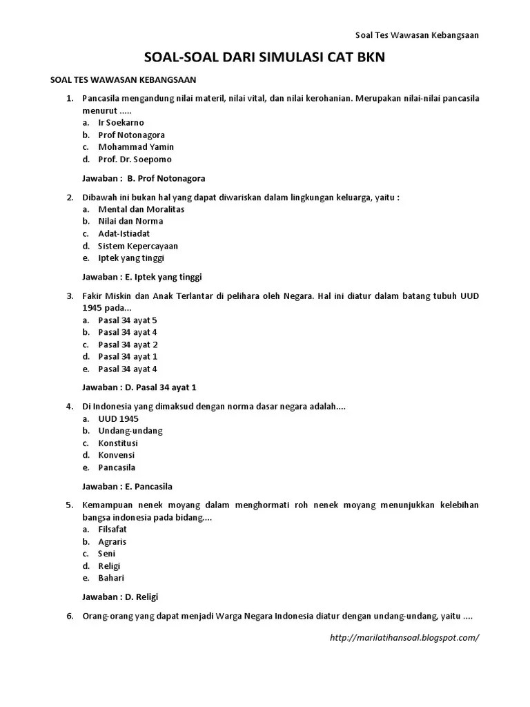 Top pdf kunci jawaban contoh soal tes wawasan kebangsaan dikompilasi oleh 123dok.com.